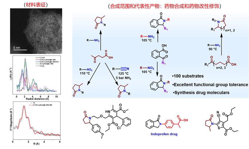 单原子催化材料因其独到的结构特性和催化活性引起广泛关注。我和团队首次将钴基单原子催化材料成功用于乙酰丙酸的还原胺化制备酰胺。该研究成果必将推动绿色乙酰丙酸转化利用技术。