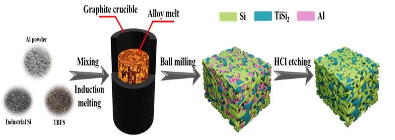 利用光伏硅废弃物和高炉钛渣合成TiSi2-Si锂离子电池负极材料 |