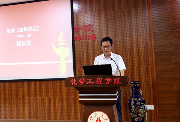 学院党委书记庞国伟、院长赵长生为先进党支部颁奖,学院党委副书记姜利寒和党委委员、副院长钮大文为获得优秀共产党员称号的代表颁奖,学院党委委员、工会主席穆畅道和专职组织员陈晓东为获得优秀党务工作者称号的同志颁奖。
