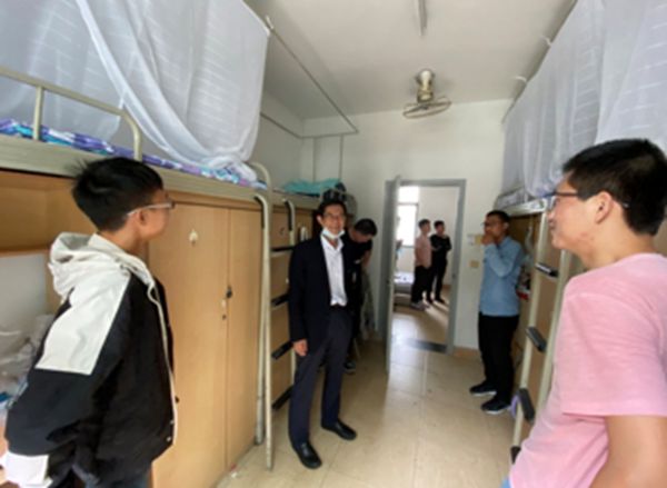 党委书记庞国伟、院长赵长生、党委副书记姜利寒、副院长钮大文、化学工程系系主任袁绍军等领导及部分教师代表走访了学生寝室,对2020级新生同学开展慰问。
