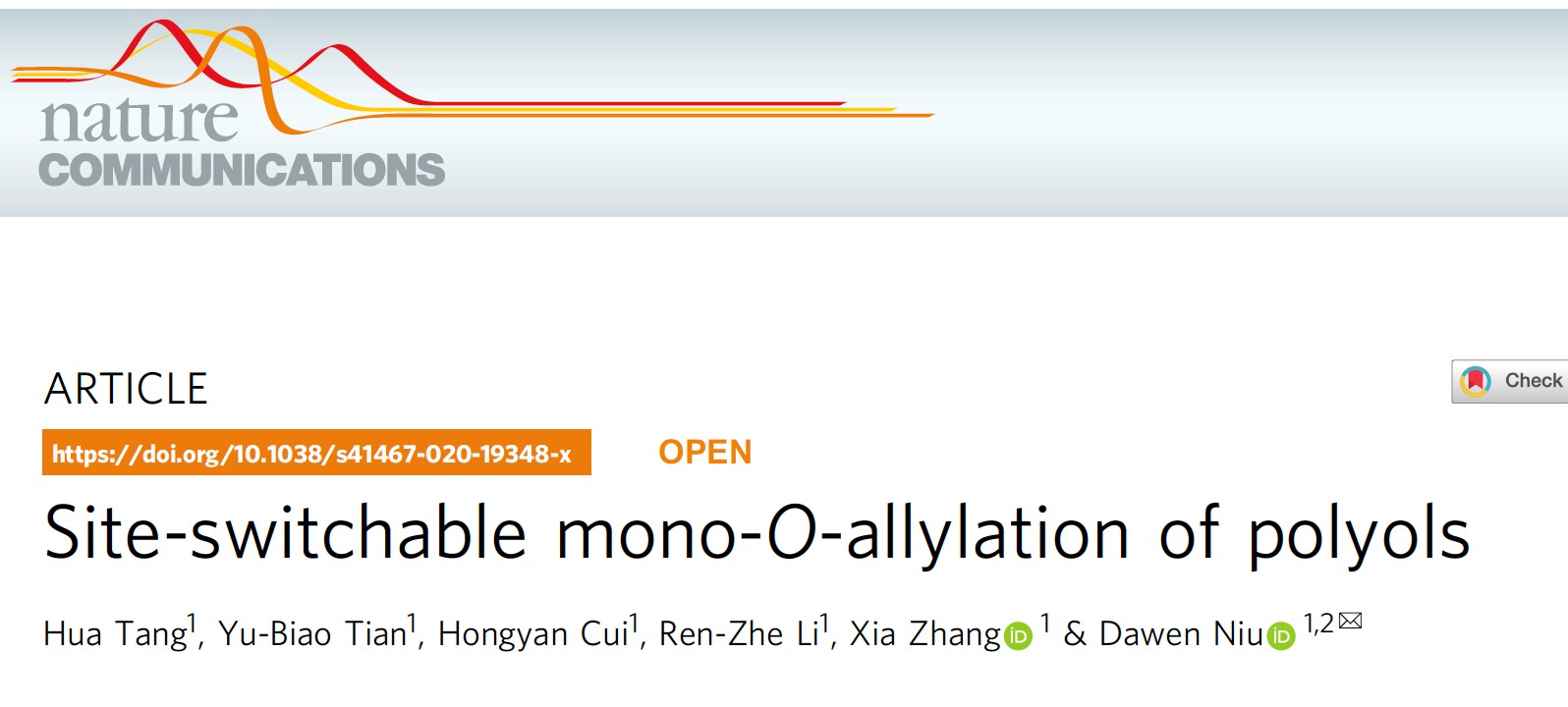 钮大文教授团队在Nature Communications上发表了题为“Site-switchable mono-O-allylation of polyols”的研究论文。该研究主要涉及糖类和多羟基化合物的选择性修饰。该文章通讯联系人是钮大文教授。