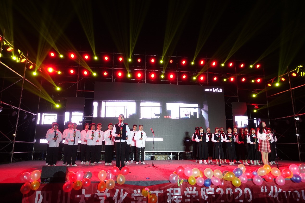 “化young年华”2020级迎新晚会在江安校区青春广场隆重举行。院长赵长生,学院党委副书记姜利寒,化学工程系主任袁绍军,2020级班主任党亚固、罗春晖、魏文韫、席军、岳海荣、周利、戴一阳,学工组辅导员司振兵、龙柯、李珍珍、雷金凤、李忆雯等老师,以及明泉集团董事郭彦超、人力资源中心主任王延波参加晚会。学院400余名同学与老师们一同欢聚晚会,共享视听盛宴。