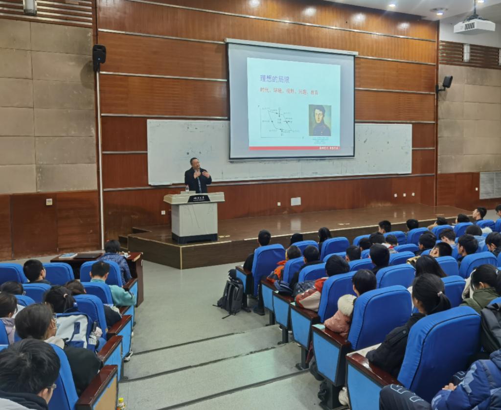 梁校长以习近平总书记对广大学生的期望为起点,提出了理想的基本概念,以多个对比事例告诉同学们理想并不是抽象的希望,会被时代的发展、环境的优劣、视野的宽窄、兴趣的有无以及教育水平的高低所局限,每个人的理想也会影响世界发展。“想与不想,结果大不一样。”这是梁校长对同学们的警醒。理想之于每个人都无比重要,无论远大与否,拥有一个理想、设立一个目标都显示着我们对自己的生活、事业的美好期待。同时,梁校长提出,我们作为新时代新青年,不仅要积极设定目标,更要明确理想的意义。“我将无我,不负人民。”是习近平总书记为国为民的理想与准则,而我们也应响应习近平总书记的号召,将“我想”变为“人民想”、“社会想”、“国家想”,用责任与担当来衡量理想的厚度。梁校长对同学们寄予厚望,期望同学们“能成大事,更要做好人”,为国家和人民而奋斗。