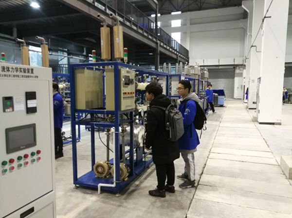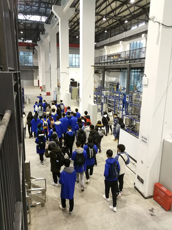四个班上午九点及十一点分两批进入卓工中心,工程实验中心的吴潘、左炀老师热情接待大家。一进门看到许多的仪器设备,以及一些学长学姐们在做实验。每个同学都充满了好奇,跃跃欲试,想要进一步观看老师们课上提到的那些设备。听完吴老师的讲解后,同学们迅速分散开,奔向“那些神奇的大家伙们”。在卓工中心的一楼我们看到了许多化工实验需要用到的基本设备,如连续结晶工艺实训装置、精馏实验装置、吸收解吸实验装置等等。在我们参观各种仪器设备的时候,吴老师和左老师细致地为我们解说,并耐心回答同学们的提问。老师有时候也会问我们一些问题。
