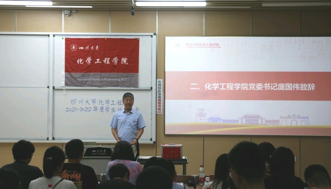 庞国伟书记代表学院对全院青年学生提出三点希望:一、坚定理想信念,筑牢信仰之基,争做听党话、跟党走的忠诚卫士。二、锤炼品德修为,练就过硬本领,争做堪当民族复兴大任的时代青年。三、强化实践历练,严格自我约束,争做爱川大爱化工的模范标兵。