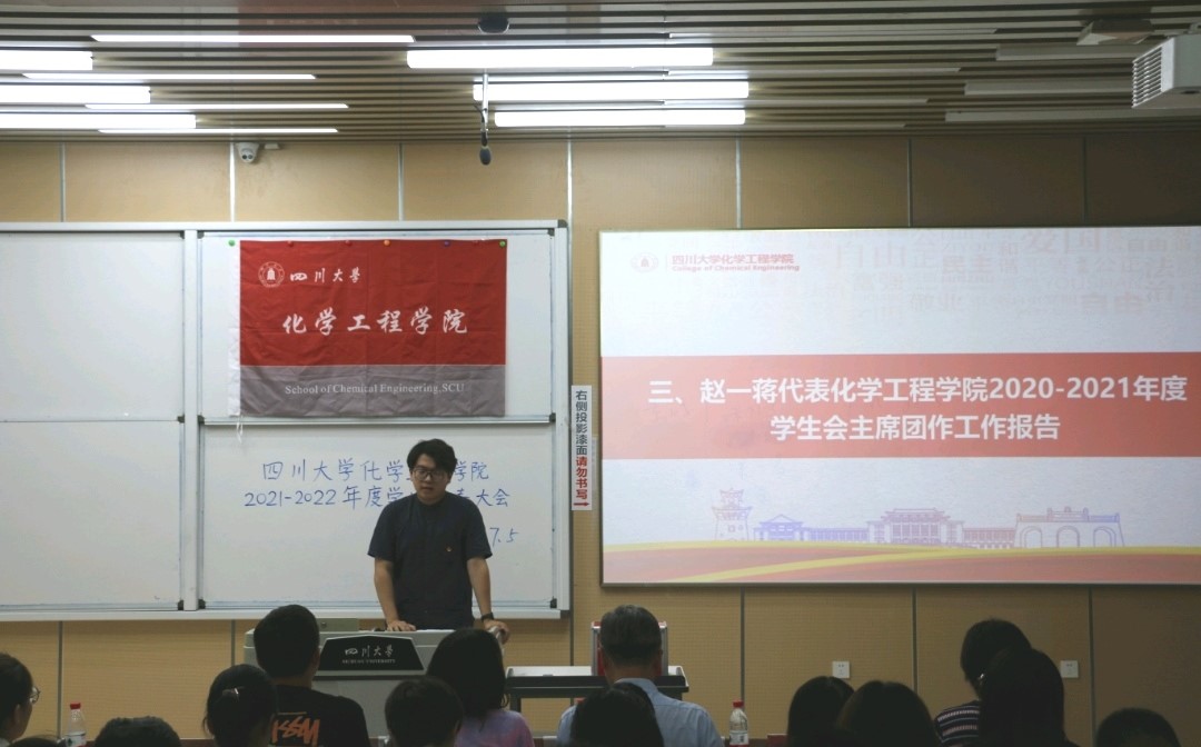 随后,学生会主席团成员赵一蒋同学代表上一届学生会主席团作学生会工作报告。2020-2021年度学生工作圆满完成,秉承全心全意为同学服务的宗旨,紧紧围绕政治性、先进性、群众性,敢于担当,积极作为,实施了理想信念、学风建设、实践育人和校园文化等四项服务青年成长的引领计划,很好地发挥了学生会组织“自我教育、自我管理、自我服务”的重要功能,在促进学院深化改革、服务学生成长成才中发挥了重要作用。