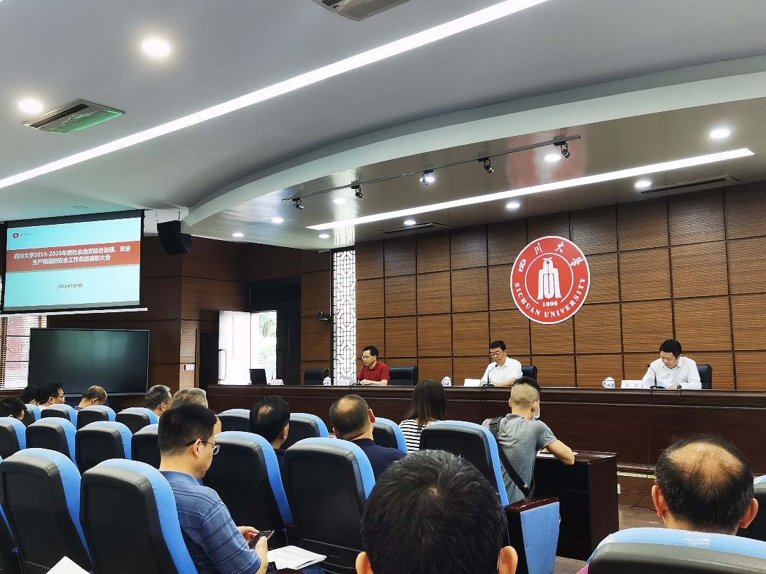 在望江校区召开2019-2020年度社会治安综合治理、安全生产和消防安全工作总结表彰大会。副校长侯太平、校党委副书记郭勇、副校长褚良银,学校相关单位负责人,获奖先进集体和个人参加大会。会议由褚良银主持。