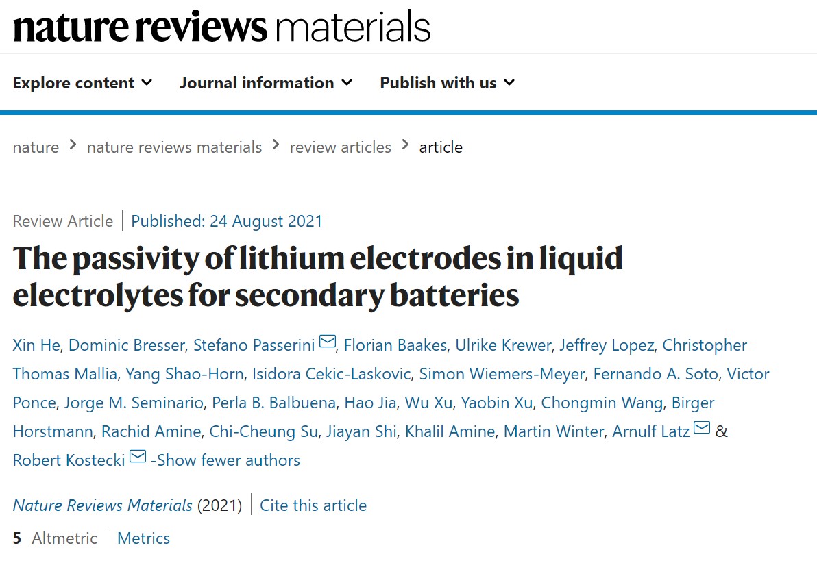 近日,化工学院何欣特聘研究员在Nature Reviews Materials发表了题为“The passivity of lithium electrodes in liquid electrolytes for secondary batteries”的研究论文。该文章从一个稍微不同的角度对发生在锂电极-液态电解质界面的反应进行了深入研究,参考了金属上腐蚀和钝化现象的一般概念,并重新审查了相应的、成熟的电化学理论和模型。