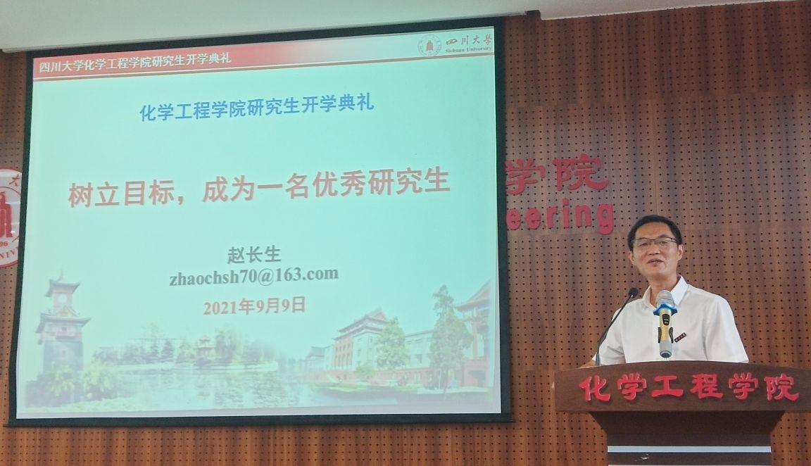 随后,赵长生院长作专题报告。赵院长以“树立目标,成为一名优秀的研究生”为题,为研究生新生即将迎来的科研生活给予了希望和嘱托,同学们无论来自哪里,学的什么专业,从今天开始你们就是川大人了,未来几年,甚至更长的时间里,只要你学会了把精力放在重要的事情上,全身心投入做真学问,做真科研,做真贡献,大家掌声不断,收获满满。
