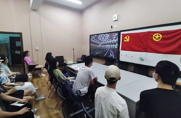 在江安校区以学院学工组三舍活动室为中心,以学生寝室为网格点,形成化工学子学习重要讲话精神的全覆盖学习网,来推进学生社区的精神引领阵地建设,激励广大化工团员学子在实现中华民族伟大复兴中国梦的新征程上奋勇前进。在学院学工组三舍活动室内,学院党委副书记姜利寒老师、辅导员司振兵老师、李珍珍老师、李忆雯老师以及数十名党员、团员代表,共同认真收听收看热烈庆祝中国共产主义青年团成立一百周年的直播活动。此外,很多学生纷纷自发在寝室内观看,累计参与达500余人次。