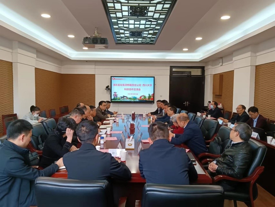 李天友代表化工学院对王大真董事长一行表示热烈欢迎。钟本和杰出教授介绍了磷化工特色,郭孝东介绍了学院与湖北宜化的前期合作情况。各课题组负责人介绍了研究方向和合作项目。
