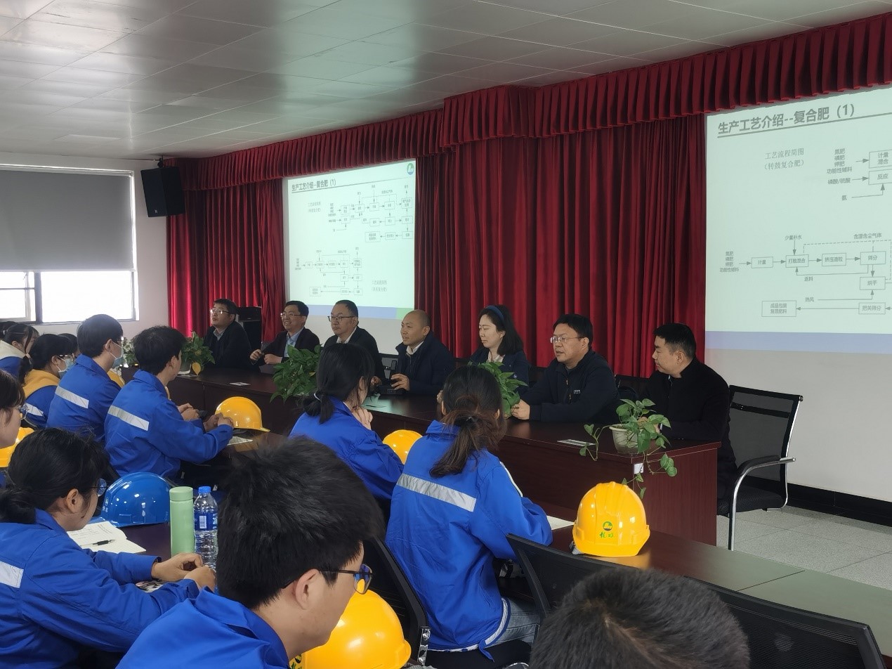 首先,李天友书记向罗显明副总与川发龙蟒公司表示了感谢,公司每年都热情接待川大学子到贵公司学习,为学校和学院的人才培养和学科发展做出了重要贡献。同时,慰问了参加实习的化工学子,鼓励大家要学以致用,结合自己在学校三年所学的基础与专业知识,带着问题去认真完成工厂的实习实践。学院一直秉承“立足基础,面向工业,服务社会”的发展宗旨,希望同学们也不忘初心,积极投身到化工事业,深入一线去发现解决问题。最后,龙蟒副总裁罗显明先生对此次川大师生的到来表示了热烈欢迎,同时以学长的身份期望大家学以致用,学会本领,也鼓励大家将来加入川发龙蟒,为祖国的化工事业添砖加瓦。