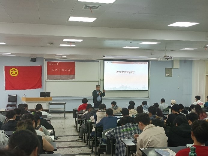 最后,李德富教授以“祝大家学业有成”的美好祝愿为本次讲座画上了圆满句号。本次讲座内容丰富,循循善诱,既加深了同学们的专业认识,又增强了同学们的科研思维能力,正如李德富书记所说,同学们和化工学院的发展之路都还很长,期望大家与学院一起奋斗,携手共进。
