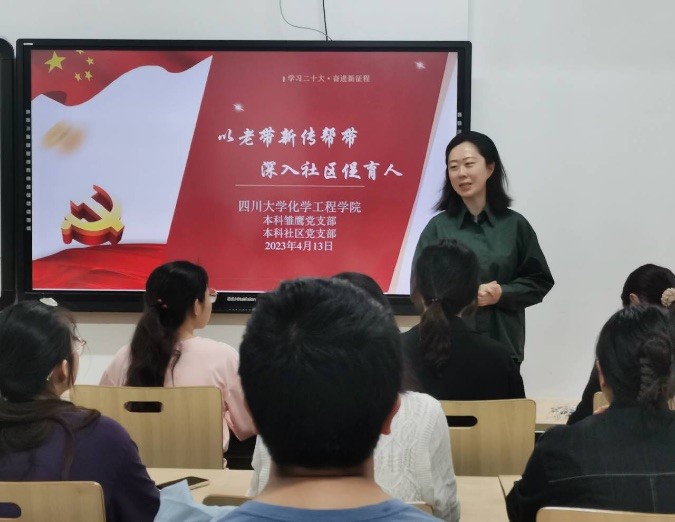党委副书记姜利寒主持本次活动并发表了开场致辞,她带领党支部的同学们回望过去,感恩党和国家的培养、感谢学校和学院的教育、感激关工委老教师对学生的倾情付出;她也对青年党员们提出殷切希望,鼓励同学们要不断增长才干,努力学习科学文化知识并积极投身科研,为中国的化工事业贡献出自己的一份力量!