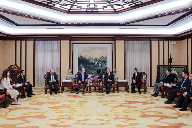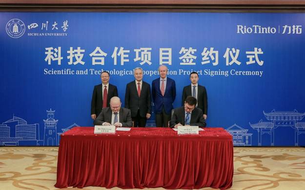 6月5日,学校与力拓集团科技合作项目签约仪式举行。校长汪劲松在望江校区明德楼贵宾厅会见力拓集团首席科学家司南杰(Nigel Steward)一行。力拓集团技术发展总经理欧嘉睿(Jared Osborne),副校长梁斌,学校科研院院长刘超、外事处处长吴家刚、化工党委书记李天友和钟山副教授等参加协议签署仪式。