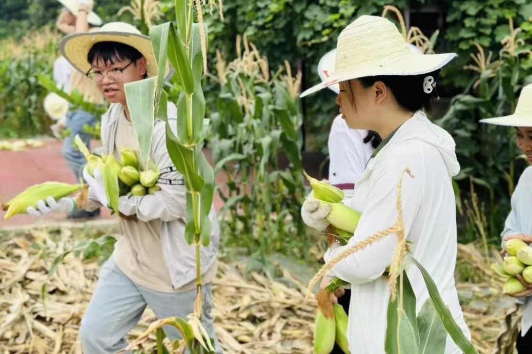 党员学生采摘玉米