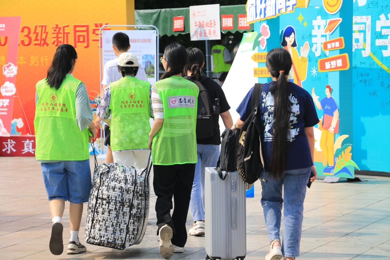 江安校区青春广场顺利进行。为给新生营造有温度、有质量的迎新氛围,校院领导亲临指导,学工队伍保驾护航,志愿者服务队伍热情积极,为同学们提供高效、周到、便捷的报到安排。