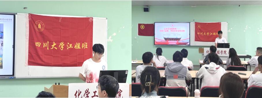 活动第二个环节,江姐班组织委员徐小平、团支部书记邱天分享江姐班2023年暑期实社会实践活动:江姐班同学在赴浙江绍兴研学实践中悟出“以大地为课堂,建又红又专人才”的感想;在赴重庆华溪村实践中得出“不忘初心,牢记奔跑”的道理;在赴重庆黔江区小南海镇实践中用实际行动助力乡村振兴、践行“强国有我”的使命。随后,学习委员梅哲威作江姐班大二上学年学业成绩汇报。