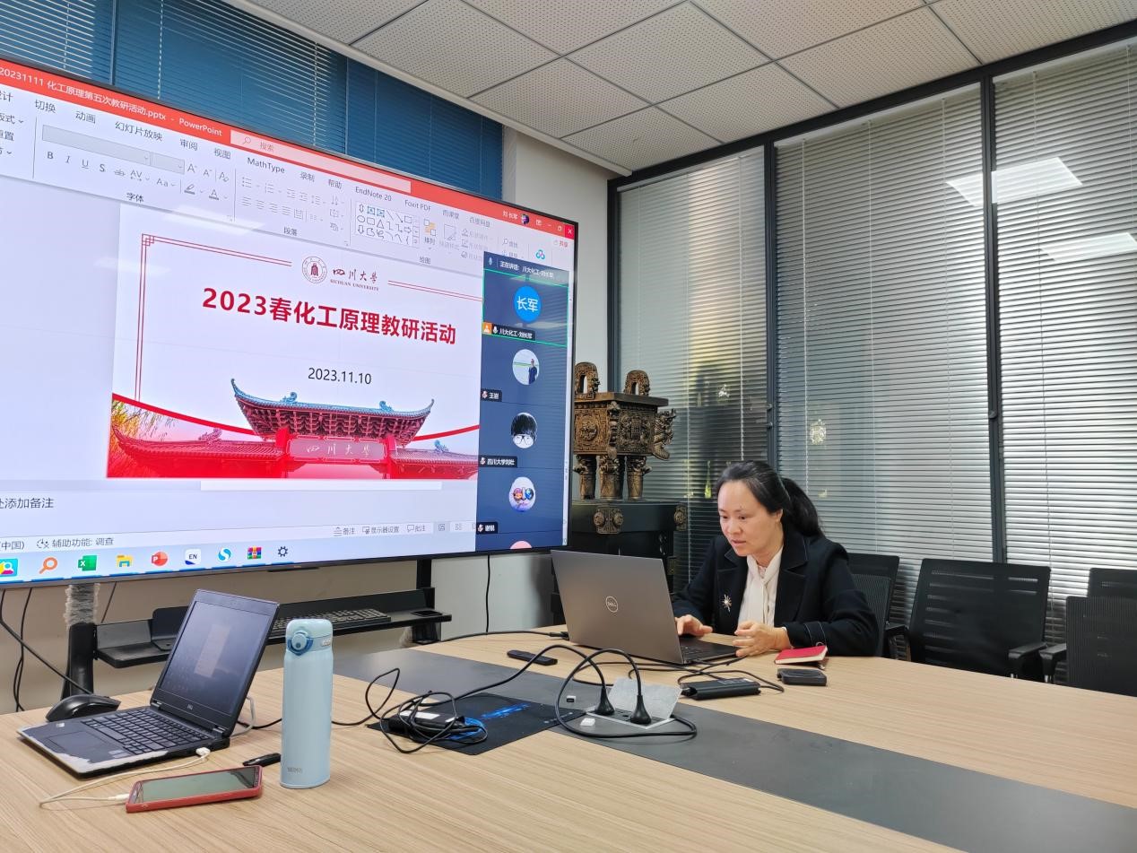 化工原理教研室在江安校区第一基础实验楼218会议室开展了教研活动。本次教研室活动由阮丽萍老师主持,教研室教师通过线上、线下结合的形式参与了本次活动。