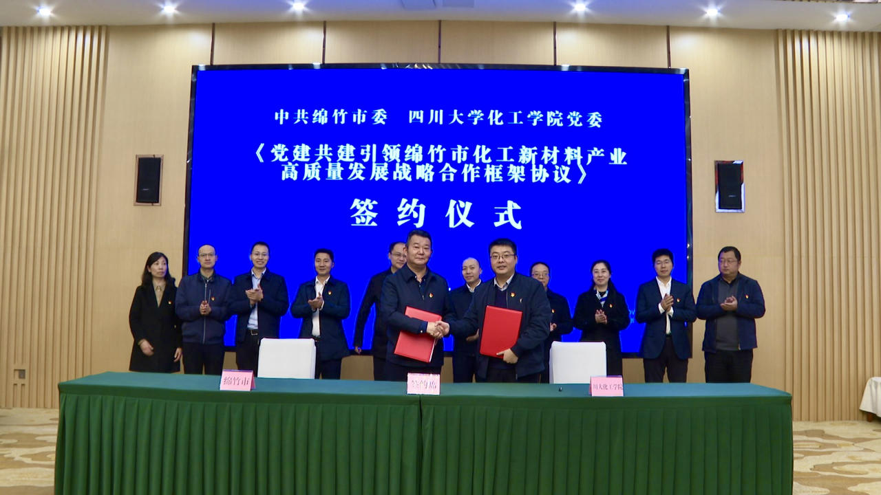 化工学院党委与绵竹市委开展战略合作,旨在以党建引领化工和新材料产业高质量发展为目标,致力打造校地、院地合作典范,希望双方能够在党建、人才培养、科研成果转化等方面建立长久稳定的合作关系,深入推进政、产、学、研、用深度融合,发挥川大化工人才资源优势,助推绵竹创新驱动和人才强市。