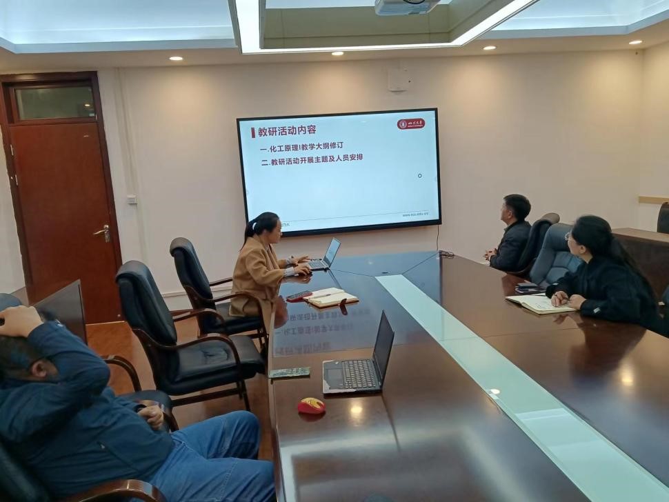 化工原理教研室在望江校区西二教235会议室开展了教研活动。本次教研室活动由阮丽萍老师主持,余徽、李向阳、樊森清、谢锐等线下参加,化工原理I其余老师通过线上参会的方式参与。