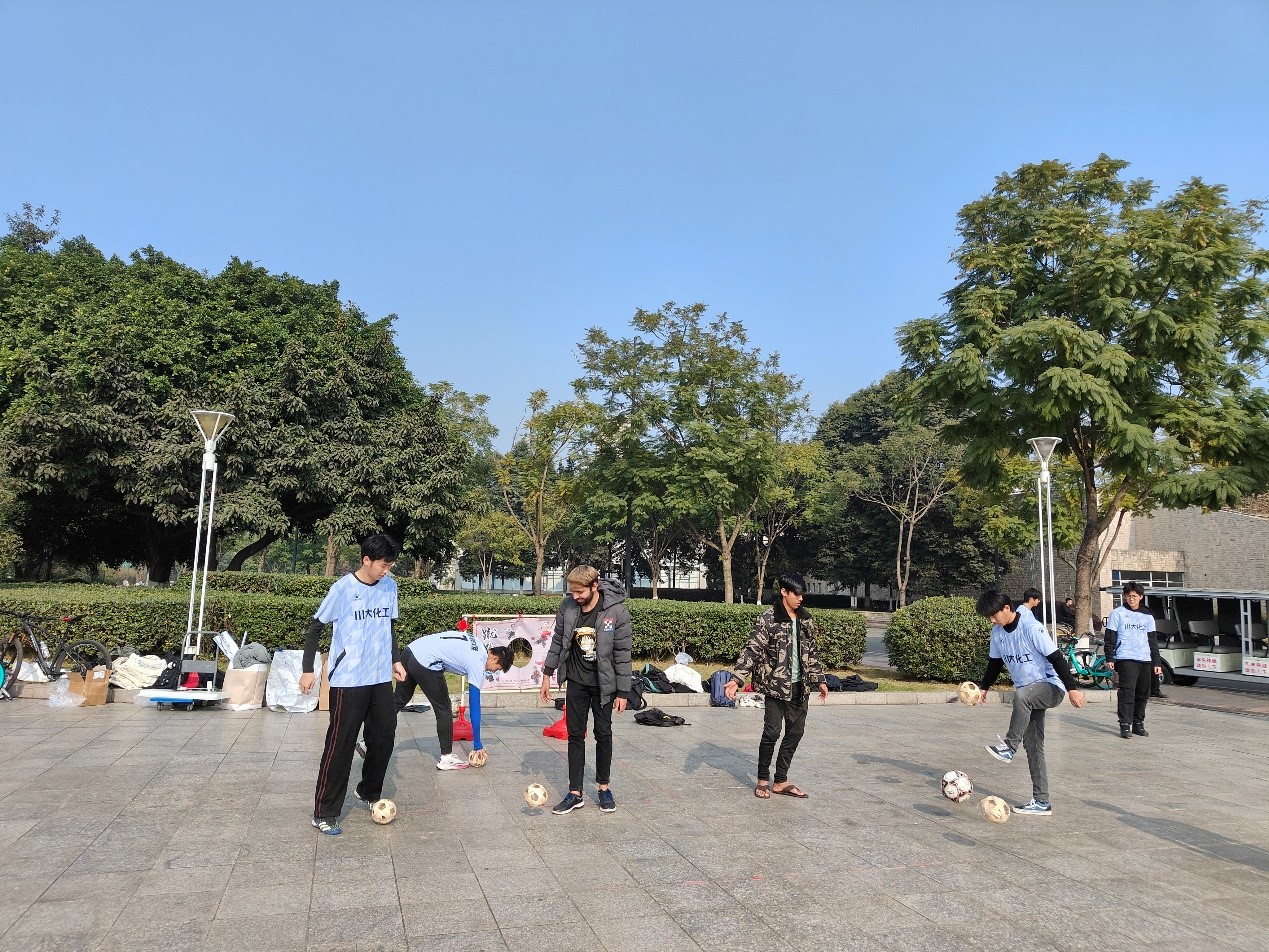 江安校区青春广场共同举办了“踢动千年传统文化,感受蹴鞠和毽子的魅力”活动,来自多个学院的留学生、港澳台学生、本硕博近百名学生和老师们共同参与了此次活动。