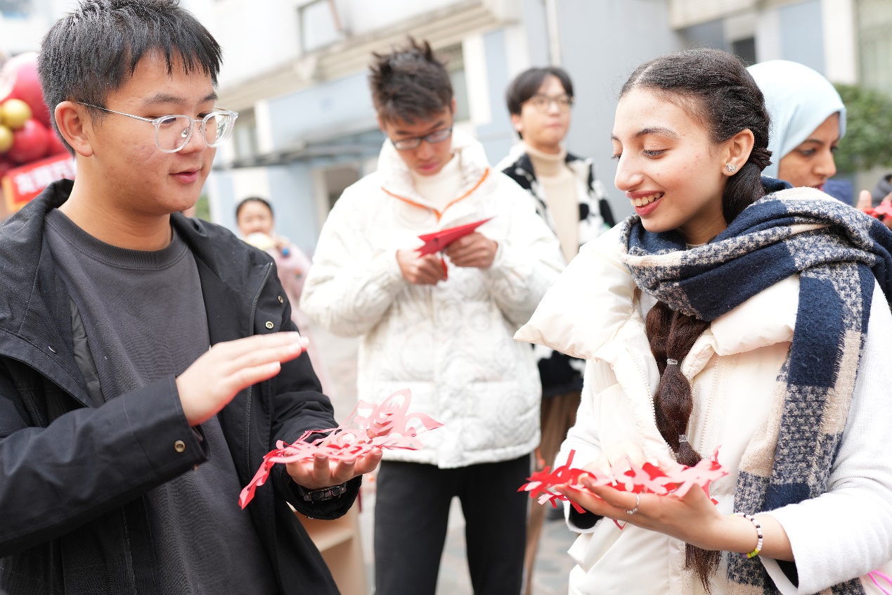 和国际合作与交流处(港澳台事务办公室)在江安校区西园3舍“一站式”学生社区举办了“四海同春,喜迎元旦”体验传统体育、剪纸和写祝福联合活动,来自多个学院的留学生、港澳台学生、本硕博学生和老师们一同参与了联欢活动。
