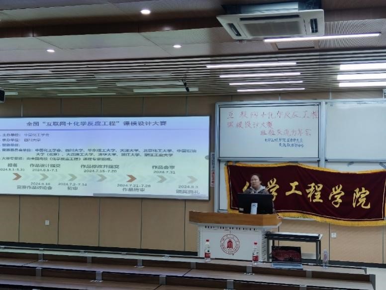 副教授唐思扬老师和“互联网+化学反应工程”课模设计大赛优秀团队“四人成虎队”和“羊肉泡馍队”进行大赛介绍和经验分享。