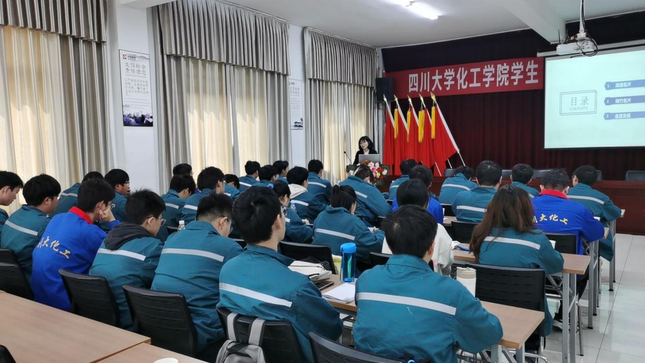 龙佰钛业人行部长杨万梅女士向同学们介绍了龙佰企业发展和人才规划,并对同学们的生产实习安排进行了介绍。龙佰集团股份有限公司致力于新材料研发,已建成“钛、锆、锂”三条产业链和创新耦合发展体系;成为钛白粉、钛锆金属、电池材料、锆材料等四大绿色新材料制造领域的佼佼者,主营产品钛白粉、海绵钛稳居全球第一梯队,新能源材料磷酸铁产能规模跻身全国行业前列。