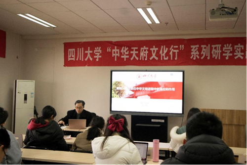 城市研究所所长何一民教授为同学们讲解成都的历史渊源及其在中华文明中的重要地位,并邀请到了武侯祠专业讲解员带领大家进行研学参观。
