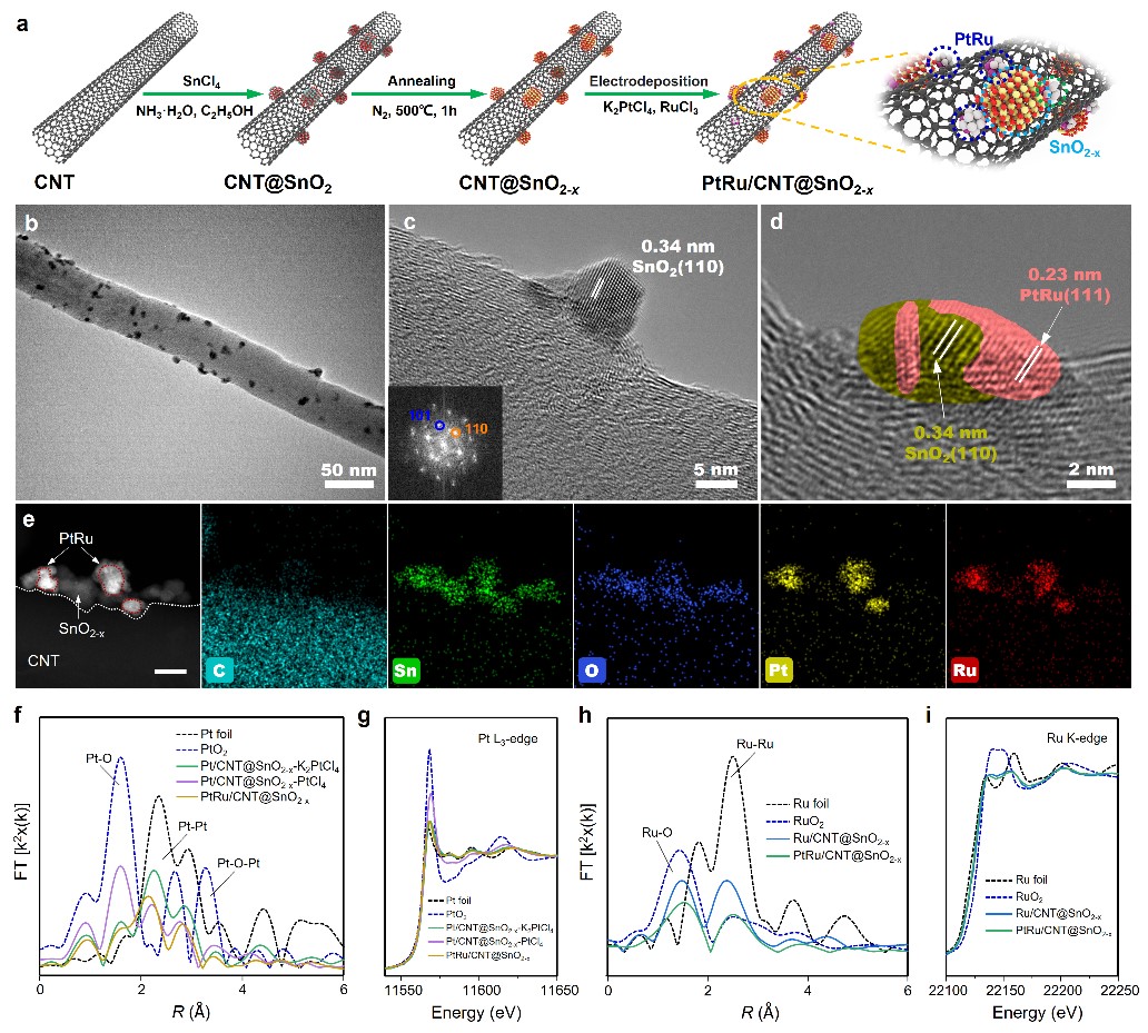 岳海荣教授团队与清华大学王定胜教授团队合作提出了一种高效复合结构(PtRu/CNT@MO2-x)碱性HER催化剂的设计策略。通过氧化物载体优化、Pt物种调控和修饰,改善催化剂导电性和调控异质界面局域环境,平衡了活性位点上H吸脱附、H2O吸附和解离行为,实现了碱性介质中的Volmer反应和H*脱附动力学同步加速,从而增强了Pt基催化剂的碱性HER性能。相关工作以“Tuning the Local Environment of Pt Species at CNT@MO2-x(M = Sn and Ce) Heterointerfaces for Boosted Alkaline Hydrogen Evolution”发表在国际顶级期刊《Journal of the American Chemical Society》。NT动漫