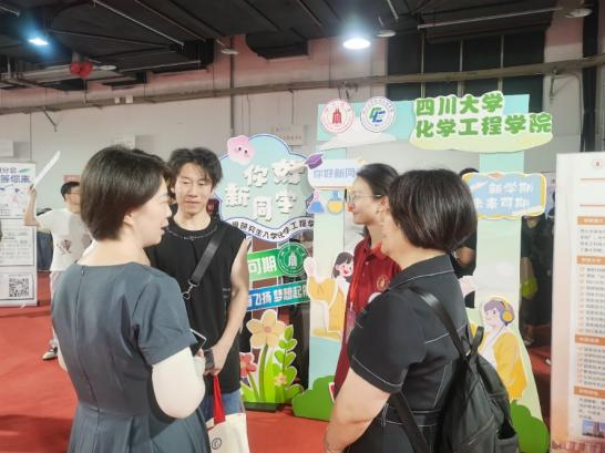 校史简本、新生文化衫以及生活指南。每一份礼物都饱含着学院对新生的热烈欢迎和暖心关怀。此外,设置了党员先锋岗,党员学长夏有强、张涛先也在现场为新生提供关于学校概况、专业设置、校园生活等方面的咨询服务,发挥了党员的引领示范作用,弘扬志愿服务精神。