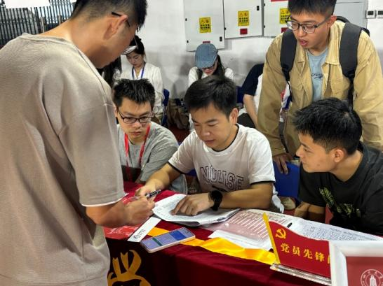 党委副书记姜利寒到现场指导工作、研究生辅导员老师杨秀英、邓磊以及研分会主席团成员和全体志愿者们共同协作,为2024级研究生新生的到来保驾护航。