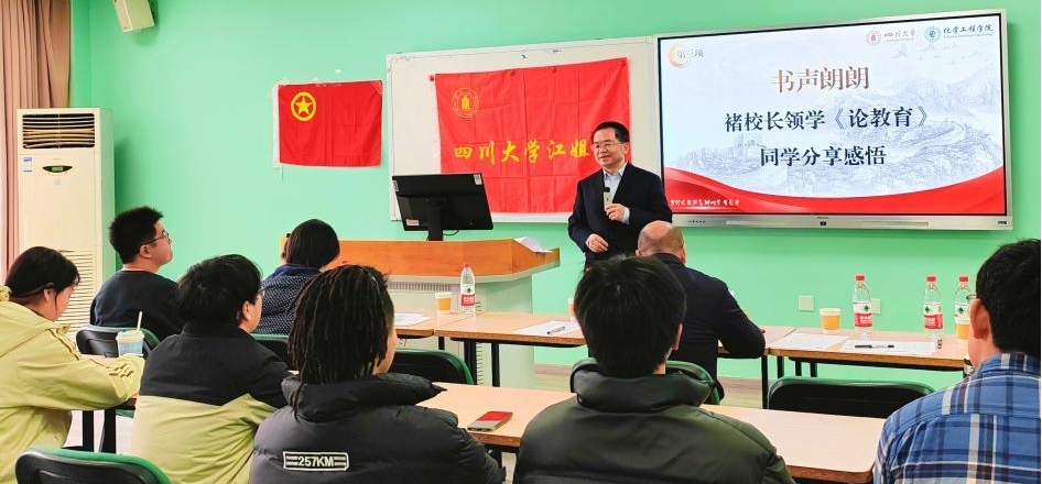 褚良银带领大家共同学习《论教育》。首先介绍了《论教育》一书的主要内容,本书收入党的十八大以来习近平同志关于教育的文稿共47篇,科学回答了“培养什么人、怎样培养人、为谁培养人”的根本问题,深化了对我国教育事业的规律性认识,对于新时代新征程办好人民满意的教育,具有十分重要的指导意义。随后,就“紧密围绕立德树人根本任务,培养德智体美劳全面发展的社会主义建设者和接班人”内容进行重点阐述,最后号召江姐班的同学们牢记习近平总书记的嘱托,努力成为交叉复合型化工人才。江姐班花雨同学分享阅读《论教育》的感悟。