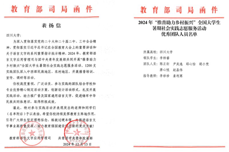 组织赴四川省凉山彝族自治州昭觉县的学院重点团队“青系昭觉·彝路生花”志愿服务队荣获“优秀团队”称号。教育部语言文字应用管理司、共青团中央青年发展部给NT动漫