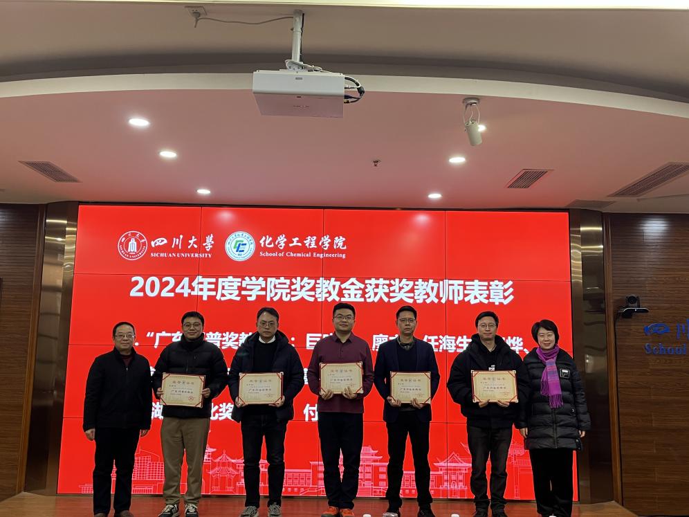 杰出教授钟本和与学院领导一起向获得2024年度学院圣华曦奖教金、宜化奖教金、邦普奖教金、云图奖教金的18位教师颁发了荣誉证书。