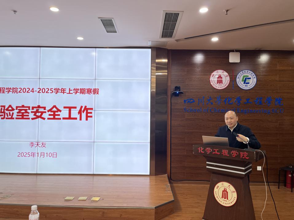 李天友作总结讲话。他指出,2024年,学院全体师生精气足、干劲大、成绩好、亮点多,各项成绩荣誉离不开全体师生的辛勤工作,离不开管理团队的担当努力。他充分肯定老师们一年来的辛勤工作,并代表学院党委和行政向老师们表示衷心的感谢。对于做好假期各项工作,他指出:一是要确保实验室和师生安全,各实验室要树立一失万无的底线思维,以万无一失的严格标准,通过培训一次、检查一次、评估一次,落实安全管理责任,对标对表文件要求抓细节管理,采取实际措施发现安全隐患、消除安全隐患,务必确保师生生命安全和财产安全;二是要严格遵守师德师风和科研诚信规范;三是要认真学习贯彻学校党委相关会议精神和学校工作总结会精神,谋划推进2025年工作,扎实推动学校重点任务落地见效,推动学院党建和事业发展再上新台阶!
