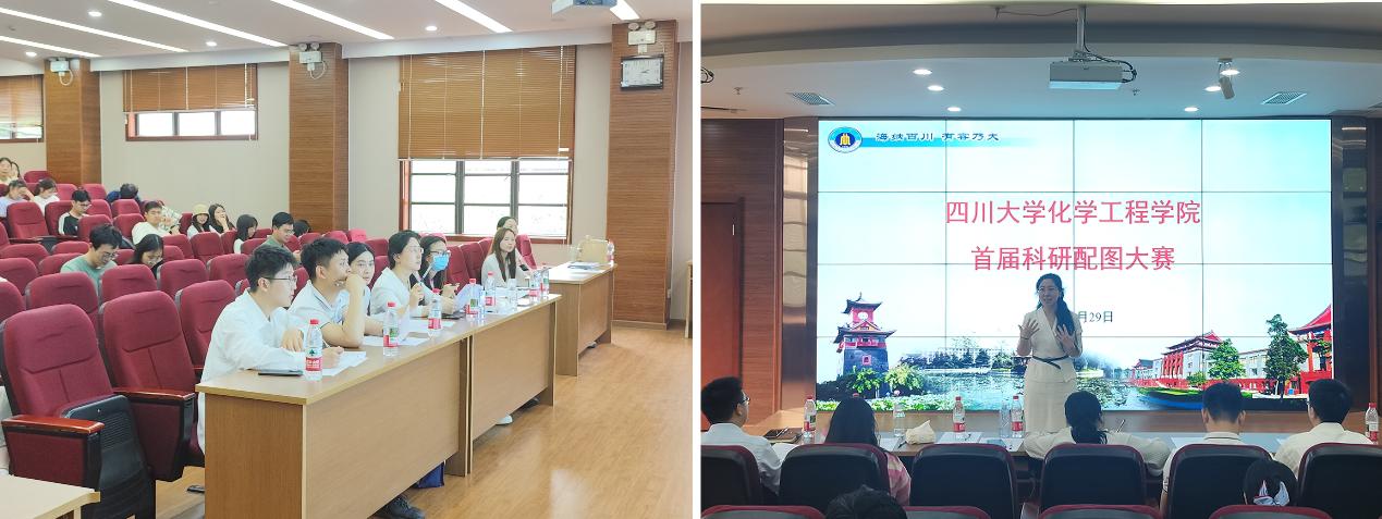 开展了以“绘科研图景,绽美育华光”为主题的首届科研配图大赛。学院副院长谢锐、化学工程系副主任樊森清、徐志朗、陈小娟、杨淏、研究生辅导员杨秀英和邓磊老师出席比赛。