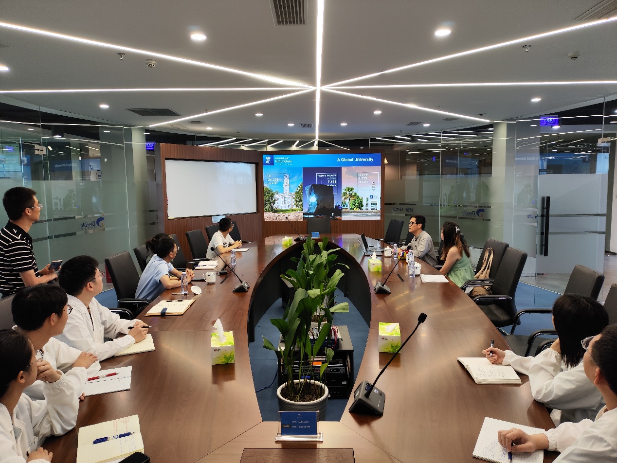 Show教授和Chia研究员在参观了德博尔公司的研发部门和产品展示厅后,为企业的科技和技术人员进行了一期现场培训交流会。Show教授向参会的公司科技和技术人员详细介绍了通过先进生物制造技术,将生物废弃物转化为有价值产品的相关研究工作,对于技术研究和产品转化为商品创造价值的过程要点进行了详细的阐述,并分享了与马来西亚相关企业合作的相关案例。Chia研究员也介绍了在膜技术研究相关的工作。