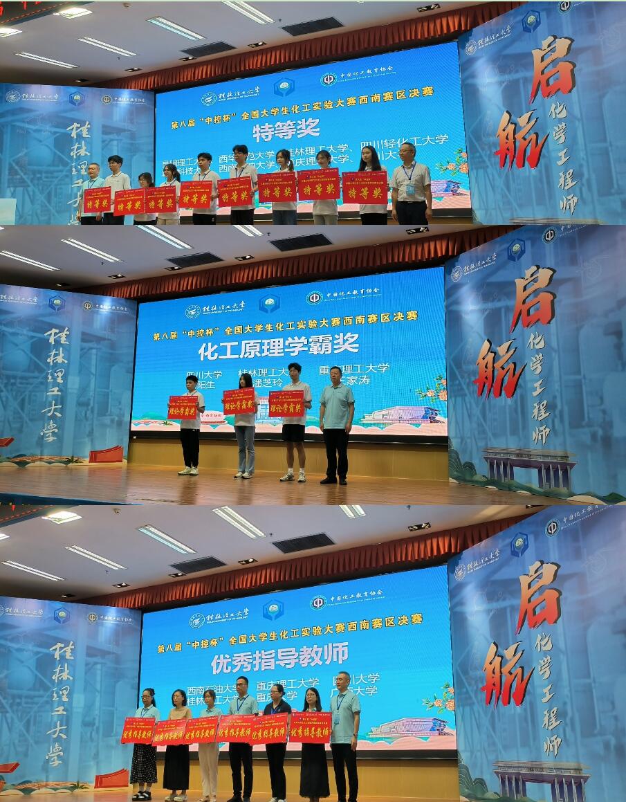 付阳生、陈庚望和张垣栋三位同学组建的参赛队于2025年7月18日-7月20日赴桂林理工大学与来自西南赛区的共48支队伍一起参加了第八届全国大学生化工实验大赛西南赛区决赛。