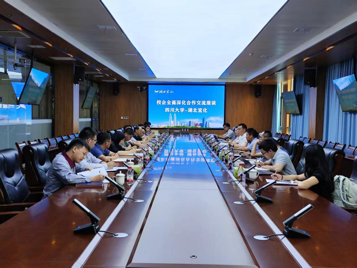 化工新材料联合创新研究中心”后所取得的阶段性成果,并就进一步深化科研项目对接、优化人才共育机制、拓展平台合作深度等议题进行了富有成效的沟通。宜化集团董事长王大真特别强调要在现有基础上进一步加大与川大的合作深度和广度。双方一致认为,应充分发挥各自优势,拓展合作维度和深度,加速推动科技成果向现实生产力转化。