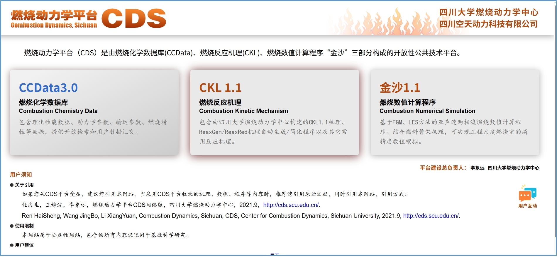燃烧动力学中心将持续倾听用户反馈,不断扩充数据,完善功能。CDS自发布四年来,访问用户来自全国34个省、市、自治区和特别行政区以及全球40多个国家,累计浏览量达12万人次,访问平台的独立IP量超过3.5万。