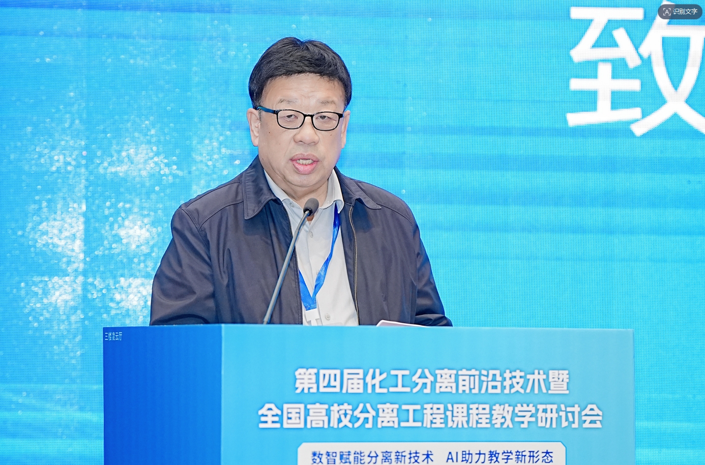 致辞。他指出,化工分离前沿技术是学校重点布局与持续支持的战略科研方向。本次会议构建的高水平学术交流平台,将有效整合学界智力资源,充分发挥科研人才与学科交叉的协同效应,深入探讨分离工程领域的前沿进展、技术转化路径与高层次人才培育机制,为化工专业本科教育质量提升注入新动力。