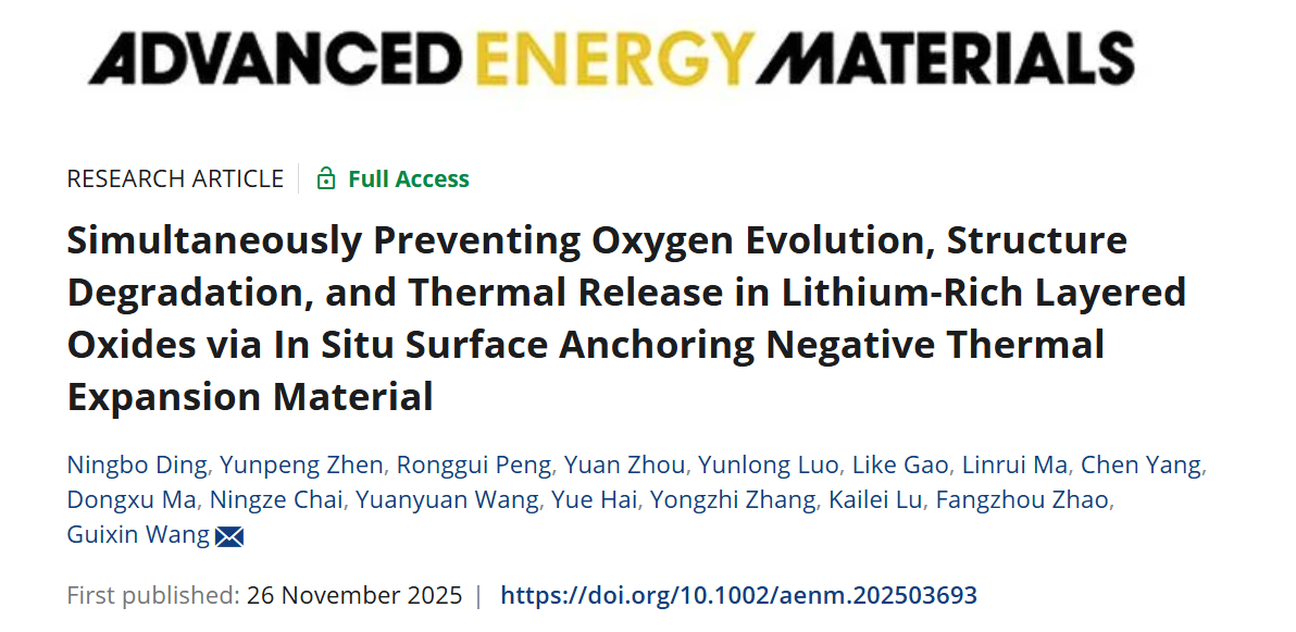 王贵欣教授团队在《Advanced Energy Materials》期刊发表了题为“Simultaneously Preventing Oxygen Evolution, Structure Degradation, and Thermal Release in Lithium-rich Layered Oxides via in Situ Surface Anchoring Negative Thermal Expansion Material”的研究论文(//doi.org/10.1002/aenm.202503693)。该论文第一作者为NT动漫