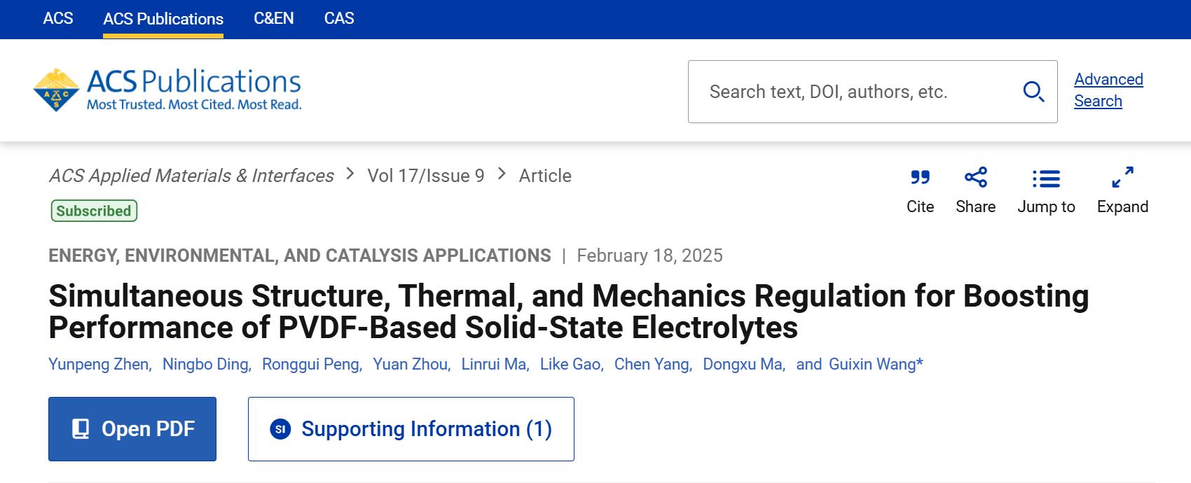 此外,在固态电解质领域,该研究团队基于结构、界面、热和力的协同调控机制,设计开发了负热膨胀材料LiZr2(PO4)3改性的PVDF基复合固态电解质,在不加任何液态电解液和压力的情况下,将制备的新型复合固态电解质与金属锂和不同正极材料组装成全固态电池并展现出好的性能(使用该电解质的Li||LiFePO4固态电池和Li||LiNi0.8Co0.1Mn0.1O2固态电池在25 ℃和0.5 C下的可逆容量分别为133.9和171.6 mAh/g,循环300次和200次后容量保持率分别为90.4和87.7%,循环300 h后的应变分别降低37.7和33.6%。而且,在大电流和高温下也有好的性能),为固态电解质的改性和低成本高性能固态电池的应用提供了新策略和新进展。相关研究成果发表在《ACS Applied Materials & Interfaces》(//doi.org/10.1021/acsami.4c22175)上,该论文第一作者为NT动漫