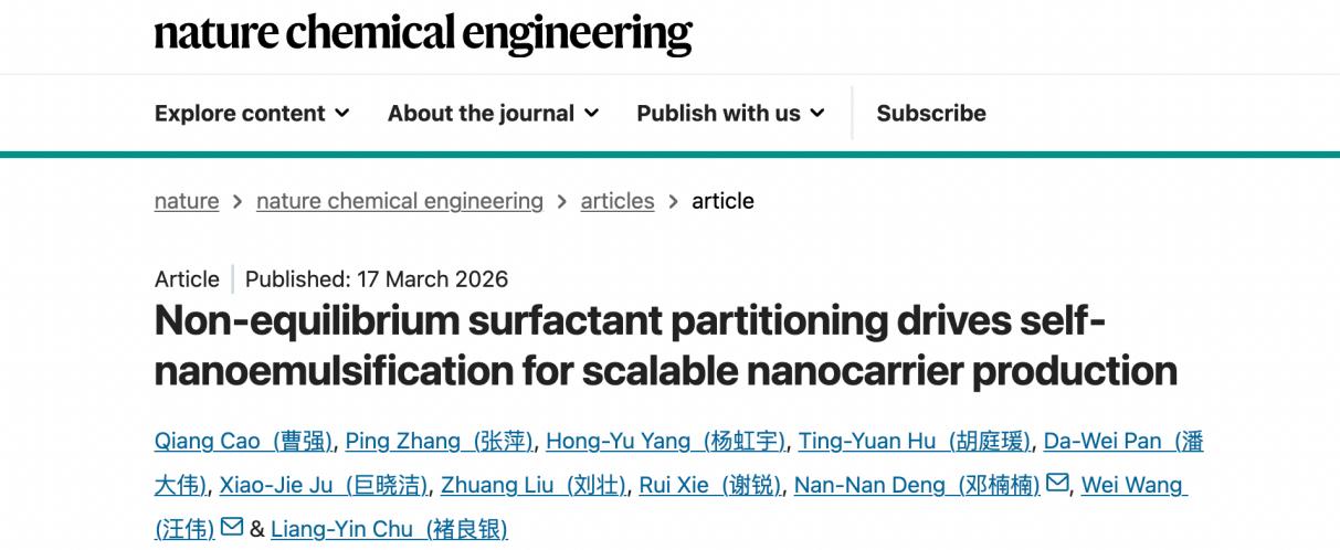 褚良银教授、汪伟教授团队与合作者在纳米乳化分散领域取得新进展,相关成果“Non-equilibrium surfactant partitioning drives self-nanoemulsification for scalable nanocarrier production”发表于Nature Chemical Engineering期刊。NT动漫