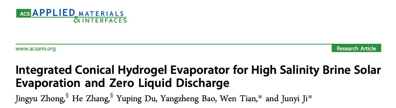 23级本科生钟婧宇以第一作者身份在高水平期刊ACS Applied Materials & Interfaces发表太阳能界面蒸发器设计应用的研究论文“Integrated Conical Hydrogel Evaporator for High Salinity Brine Solar Evaporation and Zero Liquid Discharge”。该论文依托大学生创新训练计划“锥形水凝胶蒸发器定向积盐原理与高效盐回收”,实现了本科生科研创新与实践能力的全方位培育。2023级本科生钟婧宇和2024级博士生张赫为共同第一作者,吉俊懿教授和田文高级实验师为共同通讯作者,NT动漫
