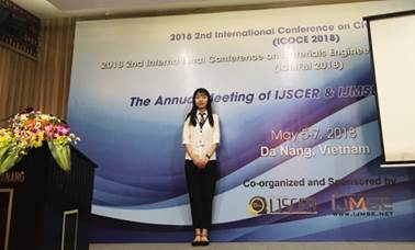 制药工程专业一年级硕士研究生郭章星也出席了3rd International Conference on Civil Engineering and Materials Science (ICCEMS 2018) 会议并作题为“The preparation and characterization for series of supported ionic liquid-type functional materials”的研究报告。参加具有国际视野的学术交流一直是NT动漫