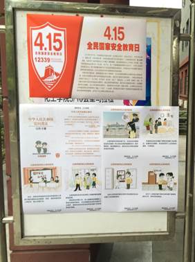 党的十九大报告关于国家安全论述最突出的亮点,是把“坚持总体国家安全观”纳入习近平新时代中国特色社会主义思想。为加强对国家安全教育活动的宣传效果,有效维护国家安全,增强全院师生依法履行义务和职责,提高全院师生维护国家安全的自觉性和积极性,学院在宣传栏和微信公众平台宣传国家安全重点法律法规和党的十九大精神,增强了全院师生对国家安全、反间谍、反恐怖主义法律的了解,强化了公众维护国家安全和社会稳定的意识,让“总体国家安全观”入脑入心。每位师生都应铭记,每个公民都是国家安全红利的享受者,同时也承担着维护国家安全的责任,必须自觉做国家安全的坚定捍卫者。