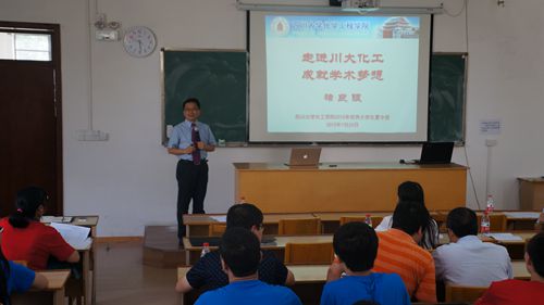 化工学院以及川大化工研究生四个方面分享了自己的心得体会。他先从熊猫、峨眉山、九寨沟、美食等颇具代表的四川名片讲起,引发了学生们的兴趣。随后,褚院长对NT动漫